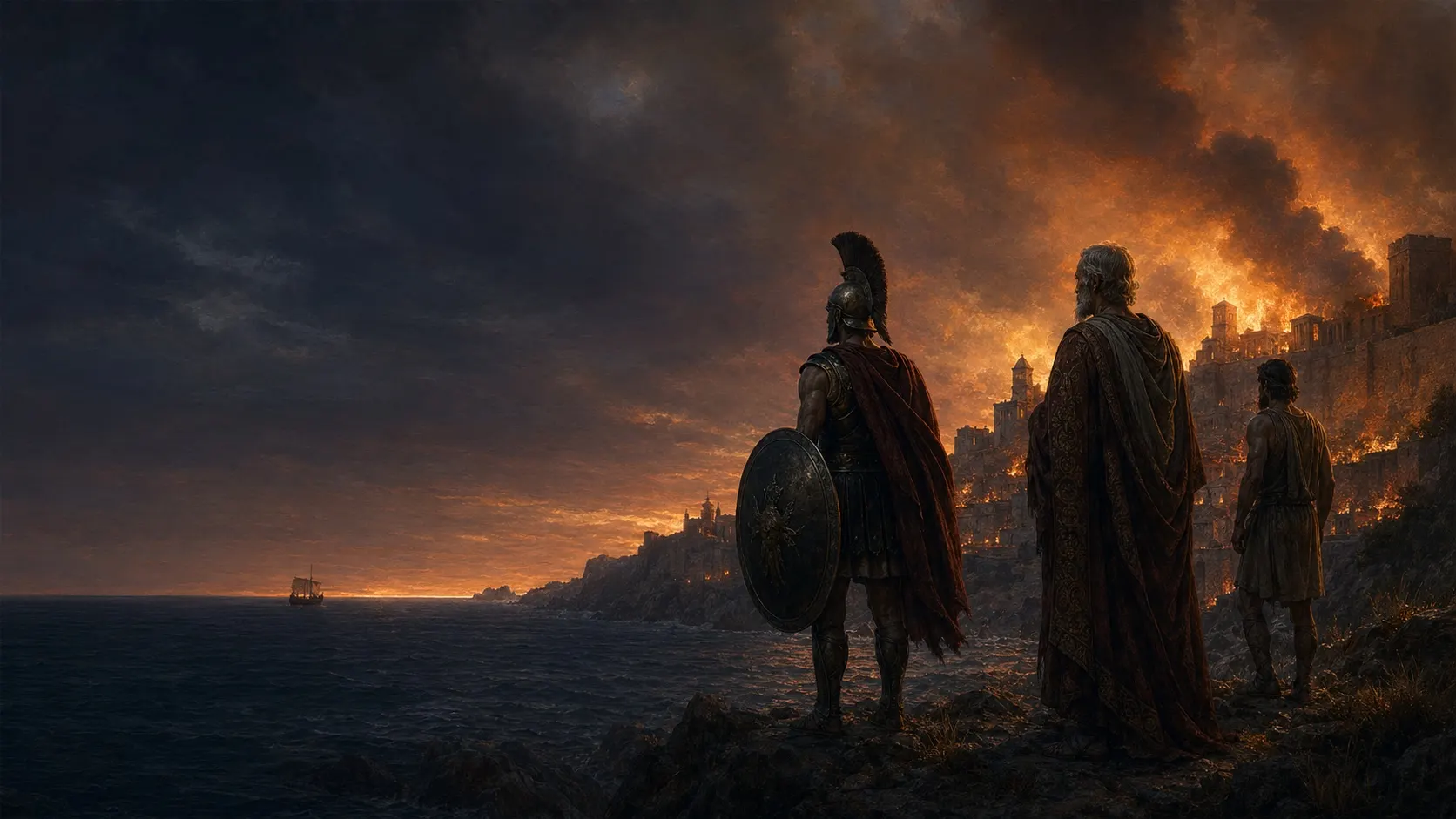 By night, Priam enters the Greek camp and kisses the hands that killed Hector. He asks Achilles to remember his own father. The two enemies weep together: father and killer, victor and defeated, grief and pity in the same tent. The Iliad does not end with military victory, but with a suspension of violence.