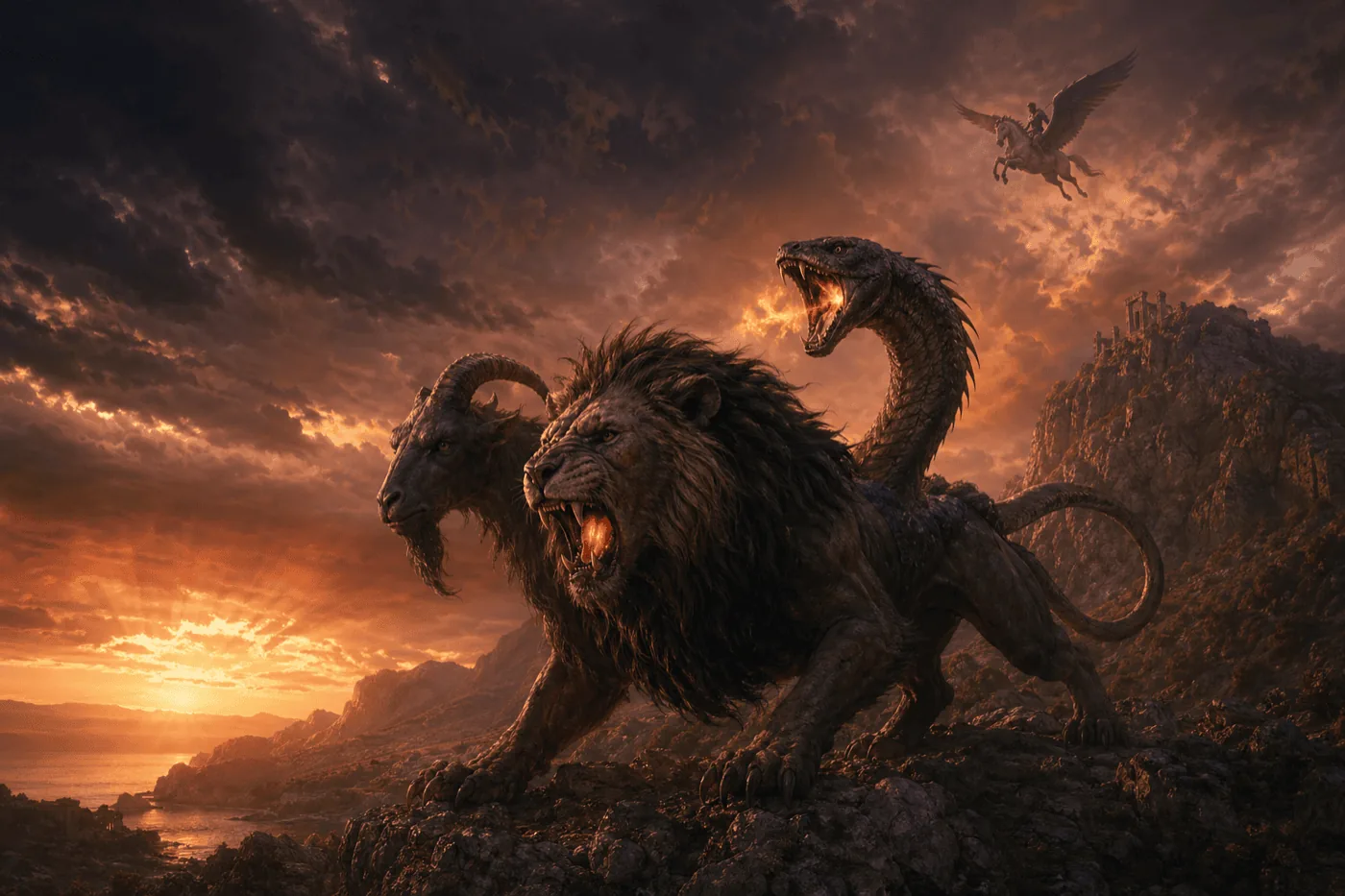 Lion, goat and serpent joined in one impossible body.